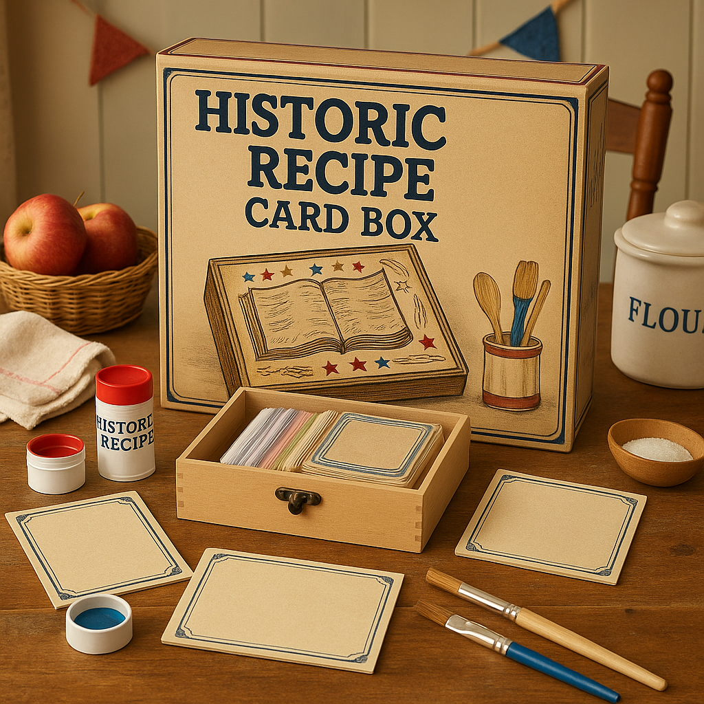 Packaged with care and nostalgia, the Historic Recipe Card Box Kit is a delightful way to celebrate America’s 250th—connecting the past and present through shared stories, favorite flavors, and handmade keepsakes.