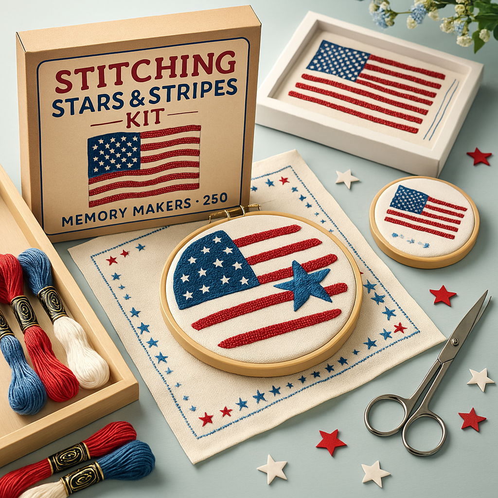 Packaged with care and charm, the Stitching Stars & Stripes Kit is a relaxing, creative way to celebrate America’s 250th—one stitch, star, and stripe at a time.